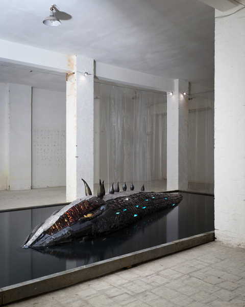 Il gruppo di lavoro durante una delle riunioni serali: prime prove tecniche sulla "pelle" vitrea del mostro